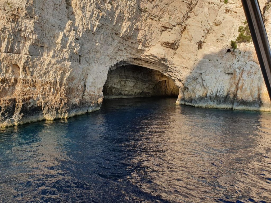 Paxi Island is also famous for its giant sea Blue Caves, named so because of the contrast between the steep white cliffs and the crystal clear bright sea.