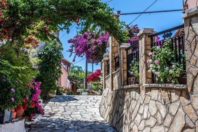Afionas is the only village whose center is not built in the traditional Venetian style of Corfu, but in the typical style of the Aegean islands - white houses with blue shutters and doors. Narrow streets, romantic courtyards, old houses, arches buried in flowers will not leave wonderful memories in your soul. Afionas is a place that is definitely worth visiting if you are on holiday in Corfu! You can enjoy lunch in cozy taverns with breathtaking sea views and stunning sunsets. The taverns are located right on the terraces hanging over the rocks.
