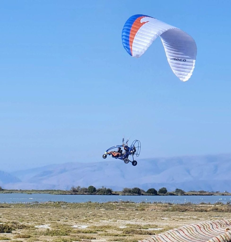 During the flight you will be accompanied by an experienced pilot. No experience or equipment is required - our agency will provide you with everything you need. The flight takes place on a comfortable paratrike. Takeoff and landing takes place on the plain of 'Livadi Ropa' next to the golf club. During the flight (depending on weather conditions) you will see the western coast from Ermones to Paleokastritsa, the beautiful beaches of Pelekas, Glyfada, and the mountain ranges of Corfu.